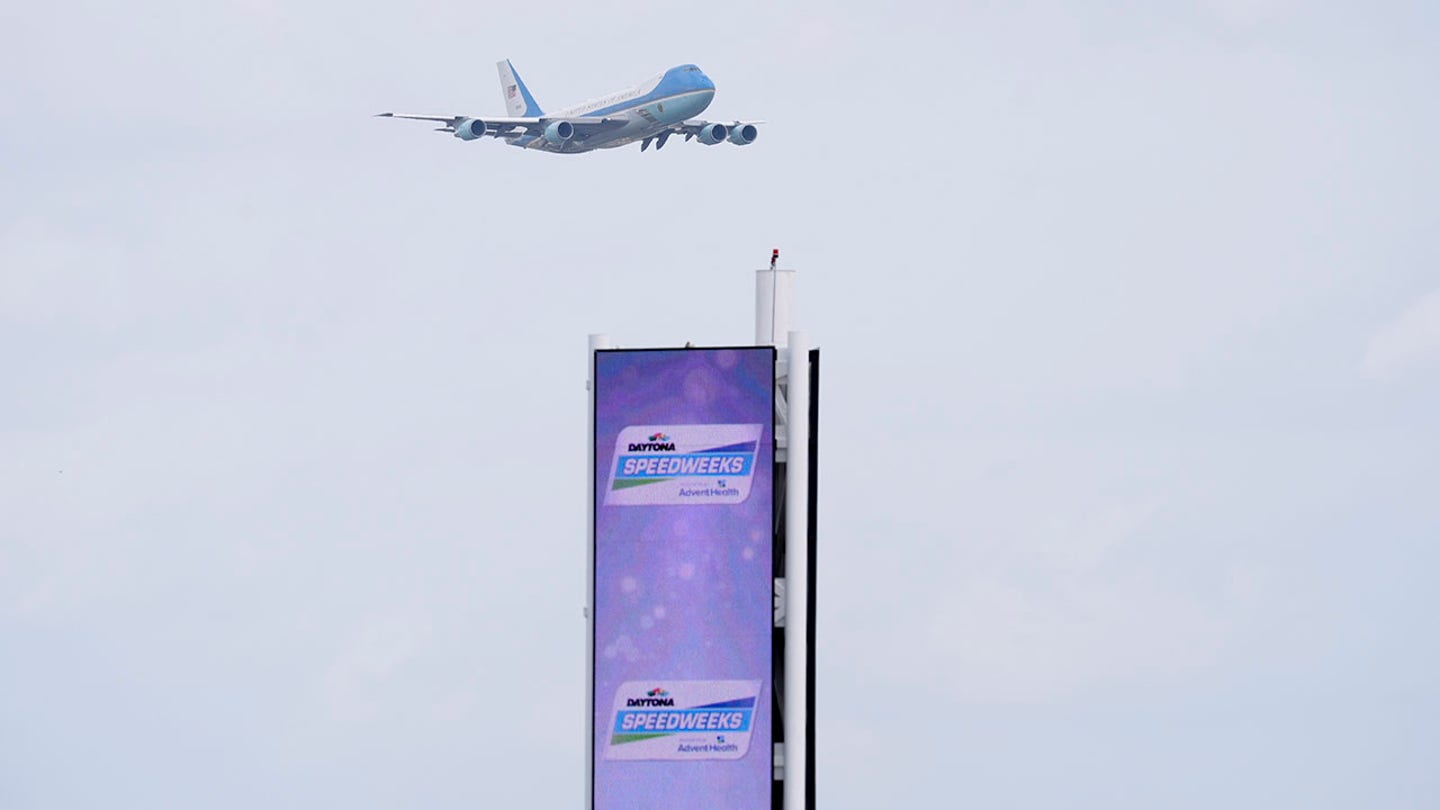 The president’s plane flew over the speedway before he landed at Daytona International Airport. Crowd cheers were heard on the broadcast of Fox while pre-race hosts spoke to Chase Elliott. Nascar fans and pilots watched the plane flying on the track.