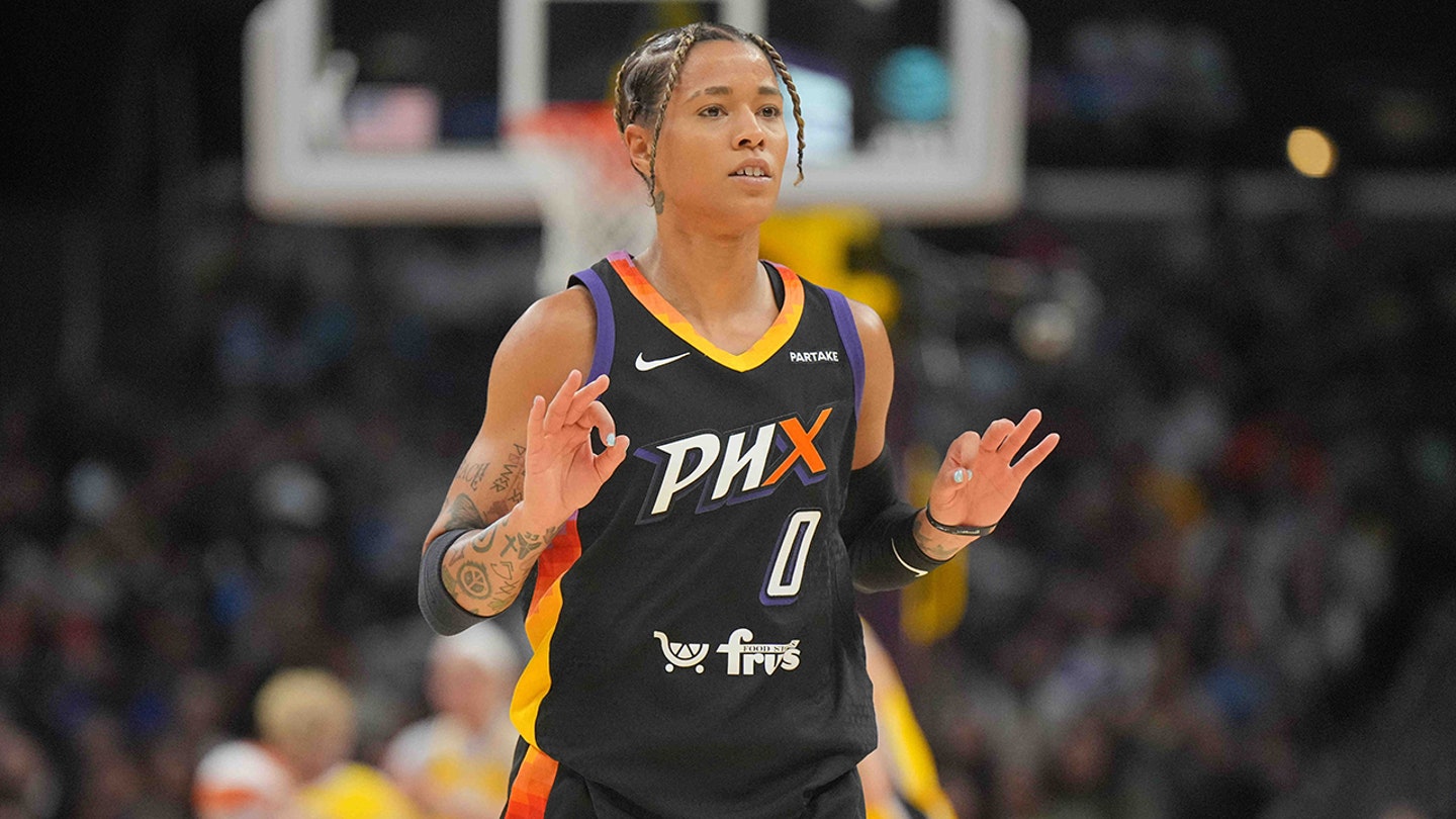 Phoenix Mercury Natasha Cloud goalkeeper makes gestures after a three -point basket against the Sparks of the Crypto.com Arena in Los Angeles, on July 7, 2024. (Kirby Lee-USA today Sport)