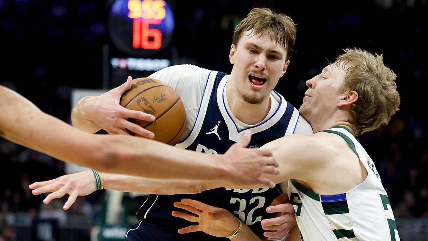 Dallas Mavericks forward Cooper Flagg (32) battles against Milwaukee Bucks guard AJ Green (20) during the second half of an NBA basketball game in Milwaukee, Wisconsin, Tuesday, March 31, 2026. (Jeffrey Phelps/AP Photo)