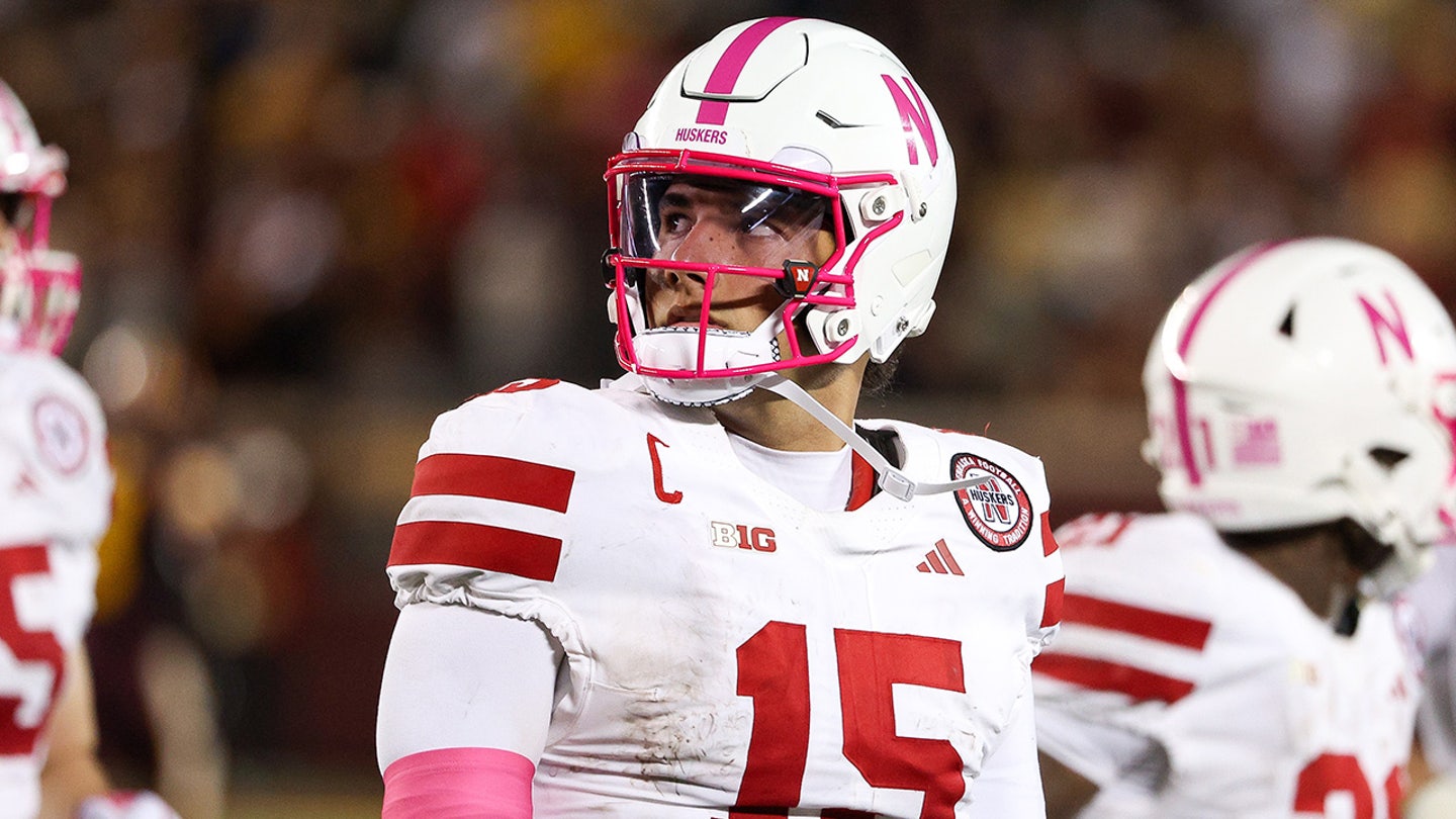 Nebraska Cornhuskers quarterback Dylan Raiola (15) looks on during the second half against the Minnesota Golden Gophers at Huntington Bank Stadium on October 18, 2025. (Matt Krohn/Imagn Images)