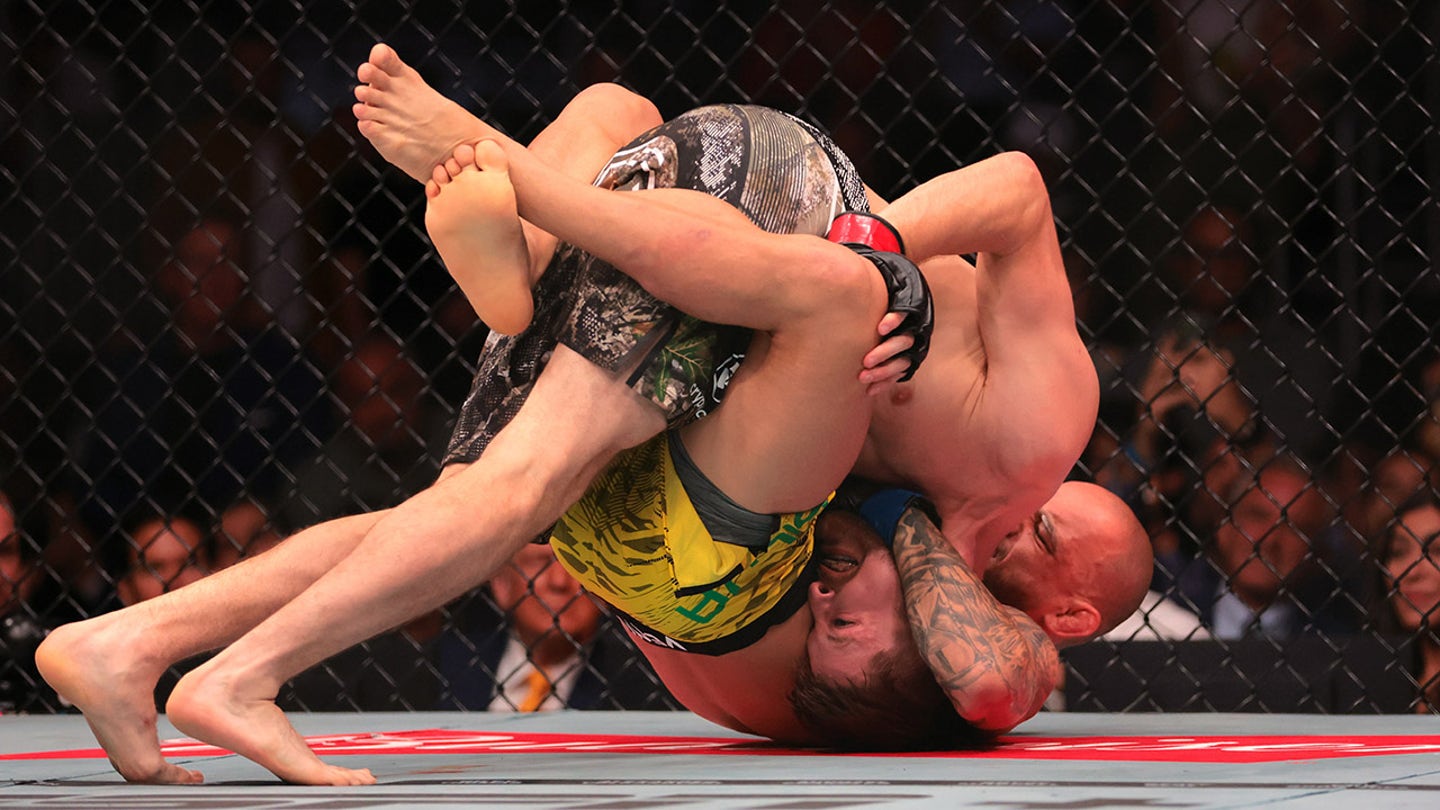 Bryce Mitchell (red gloves) fights Jean Silva during UFC 314 in Miami. (Sam Navarro-Imagn images)