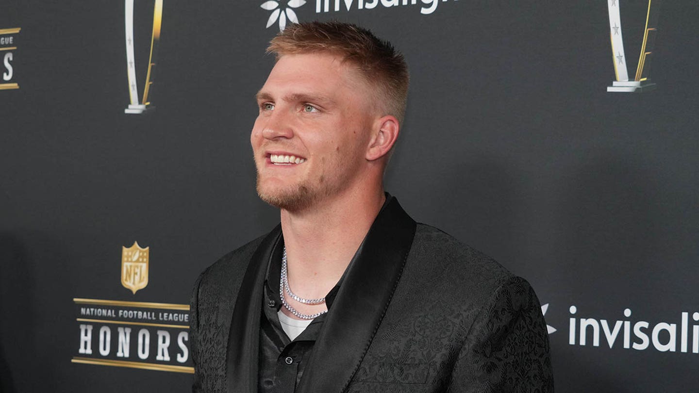 Trey McBride on the red carpet before the honors of the Super Bowl Lix NFL at the Sangeger Theater on February 6, 2025. (Kirby Lee-Imagn images)