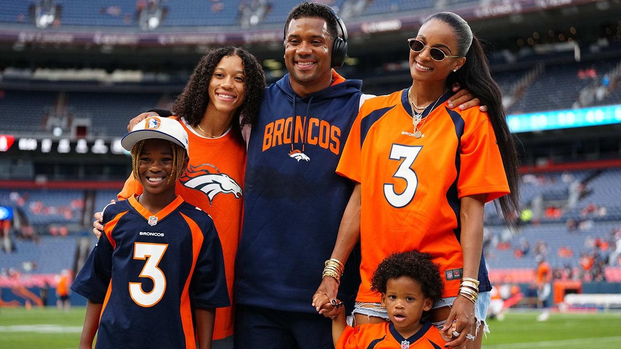 Denver Broncos, Russell Wilson’s quarterrier, and his wife Ciara Wilson and his sister Anna Wilson and Future Sons and won before a pre-season match against Dallas Cowboys in Empower Field in Mile High on August 13, 2022. (Ron Chenoy-Usa today Sports)