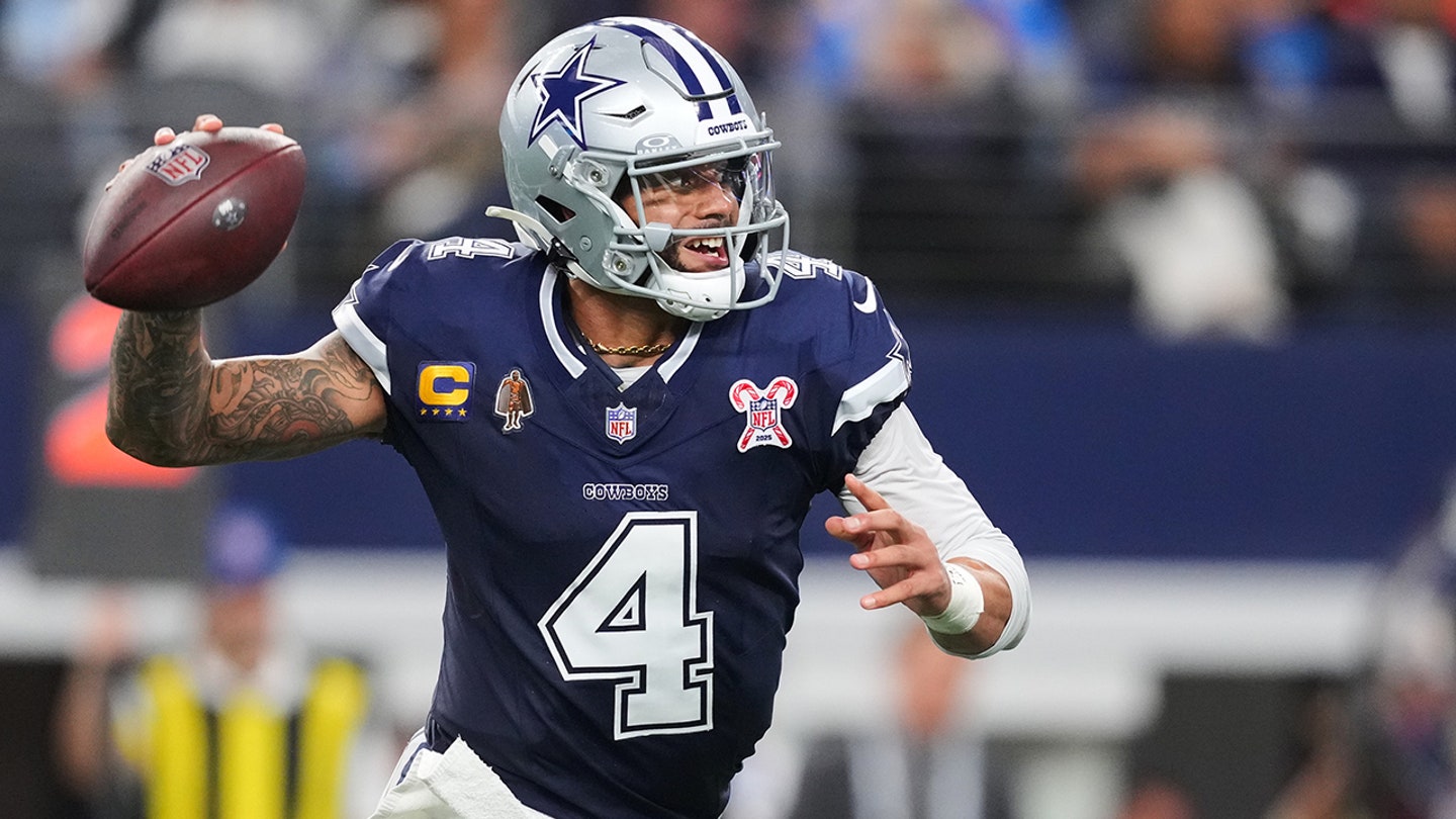 Prescott has 4,175 passing yards and 28 touchdowns this season. He leads the NFL in completions (378) and pass attempts (552). George Pickens and CeeDee Lamb both eclipsed 1,000 receiving yards for the season.