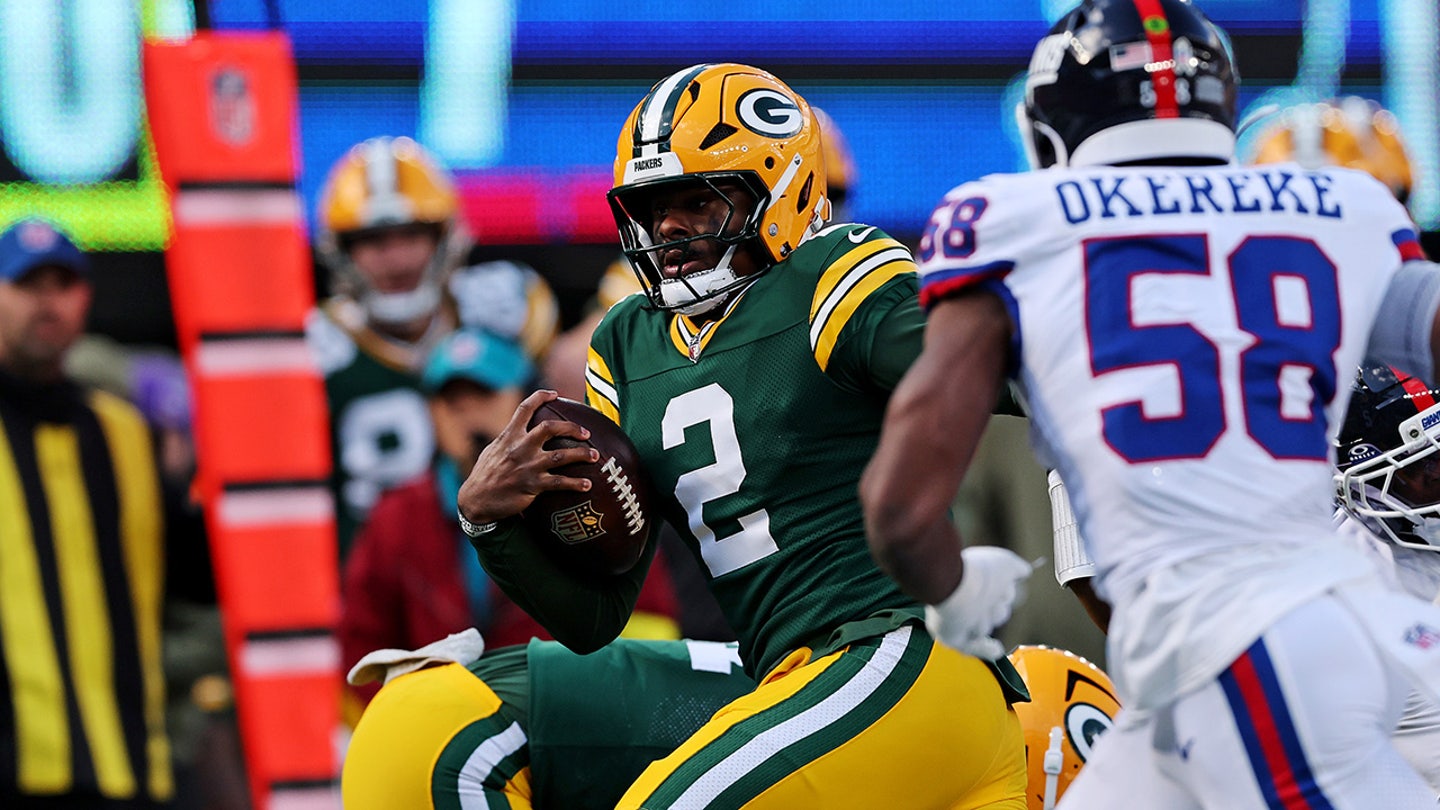 Green Bay Packers quarterback Malik Willis (2) runs the ball against the New York Giants during the second quarter at MetLife Stadium on November 16, 2025. (Vincent Carchietta/Imagn Images)