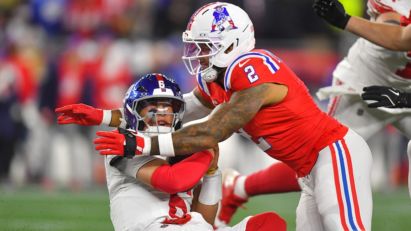 New York Giants rookie quarterback Jaxson Dart was the target of a huge hit while rushing in the first quarter against the New England Patriots.