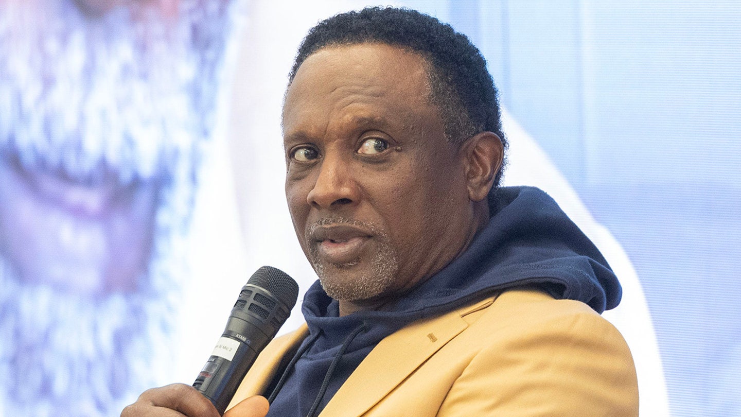 Pro Football Hall of Famer Tim Brown answers questions at a “chalk conference” held at the renowned professional football temple on Thursday, April 17, 2025. (Kevin Whitlock / Massillon Independent / USA Today Network via Imagn Images)