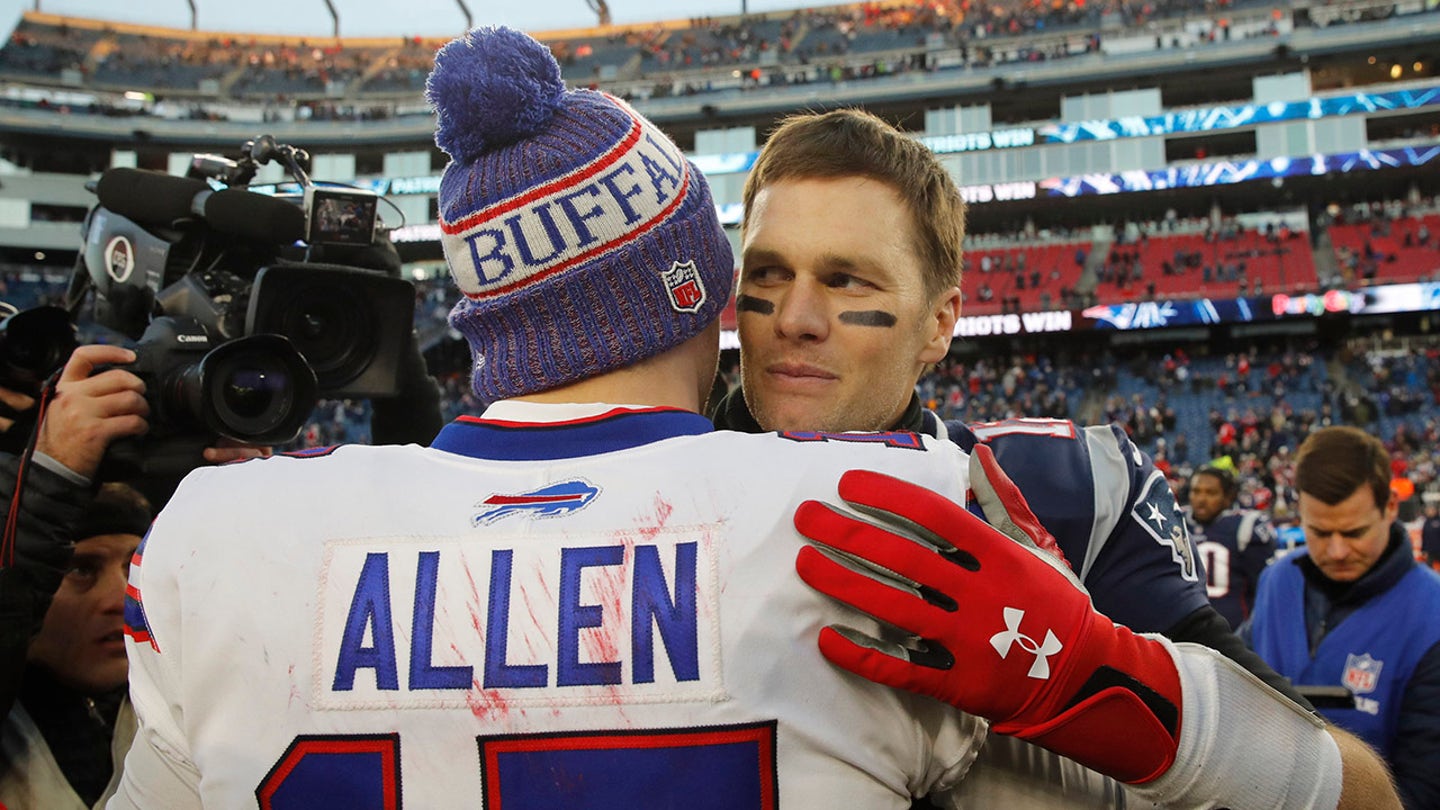 The quarter of the New England Patriots Tom Brady (12 years old) meets the quarter of Buffalo Bills Josh Allen (17) after the match at the Gillette Stadium. The Patriots beat the Bills 24-12. (David Butler II-USA TODAY SPORTS)