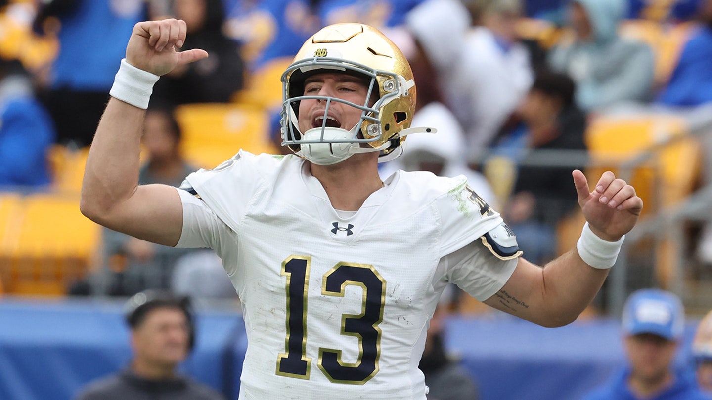 Notre Dame Fighting Irish quarterback CJ Carr (13) throws a buzzer at the line of scrimmage against the Pittsburgh Panthers during the fourth quarter at Acrisure Stadium on November 15, 2025. (Charles LeClaire/Imagn Images)