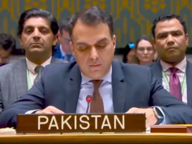 Acting Permanent Representative of Pakistan to the UN, Muhammad Usama Iqbal Jadoon, speaking at the UN Security Council on Tuesday Photo: X/ Permanent Mission of Pakistan to the UN