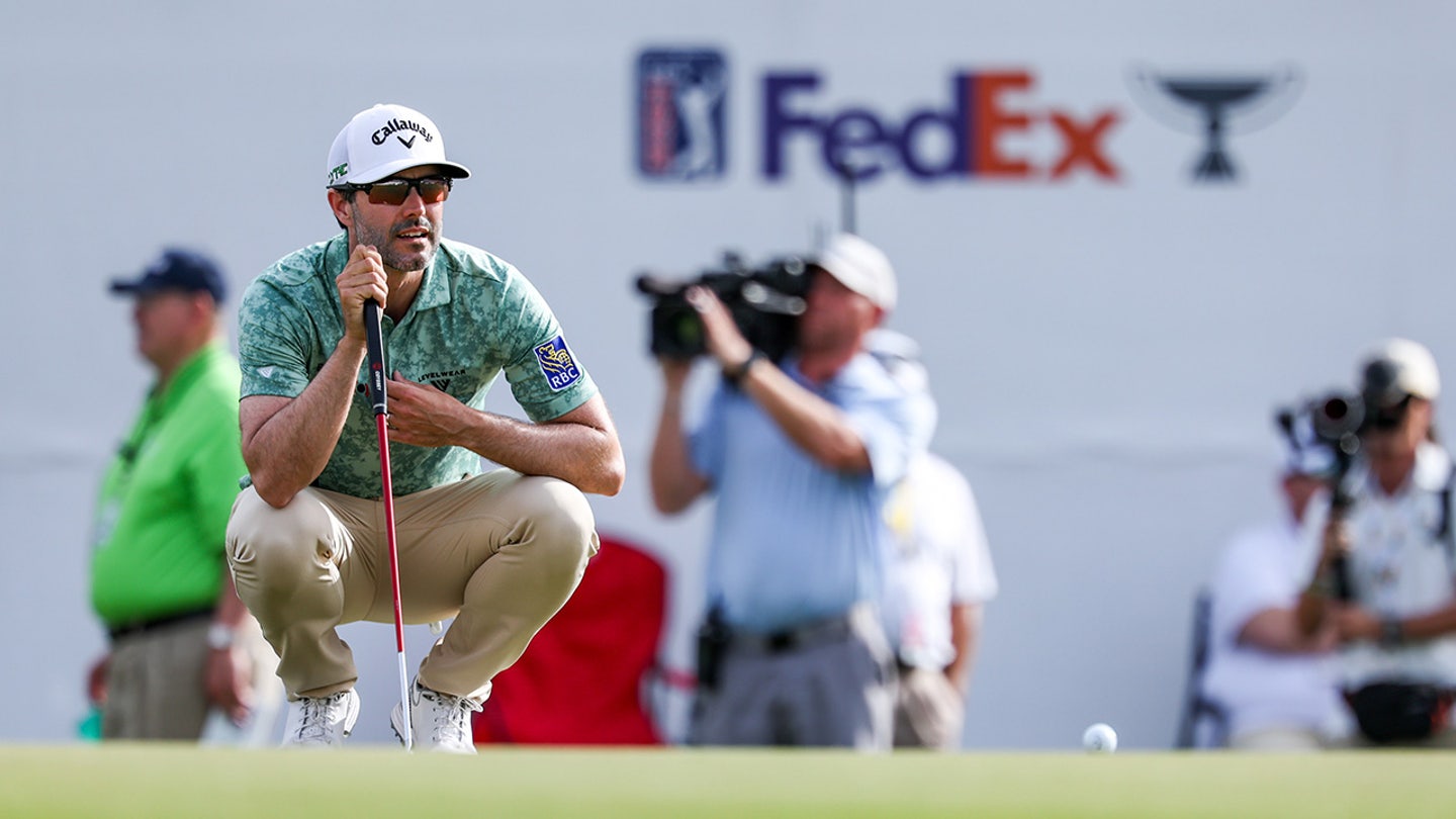 Adam Hadwin of Canada assesses the location of his ball on the green of the 16th hole in the third round of the WM Phoenix Open golf tournament on February 8, 2025. (Images Aryanna Frank-Imagn)