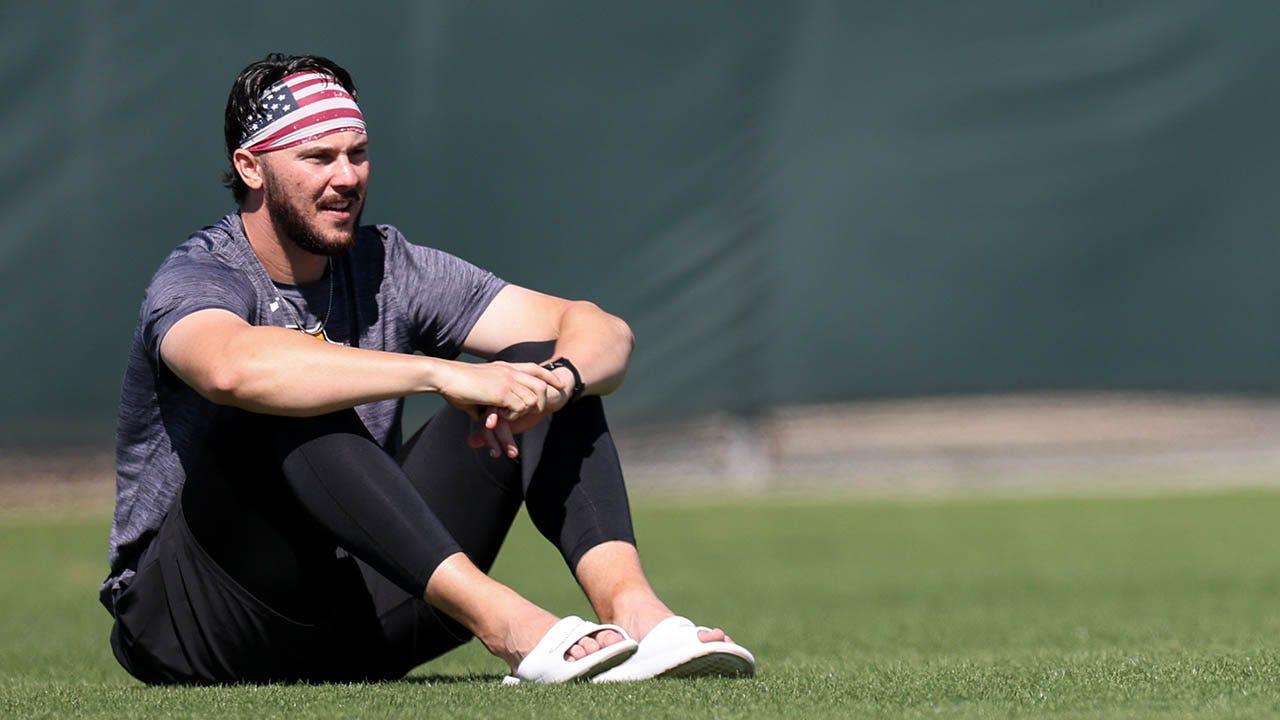 Pittsburgh launcher, Paul Skenes, looks from the outside field during spring training in Pirate City in Bradenton, Florida, February 17, 2025. (Nathan Ray Seebeck-Imagn images)