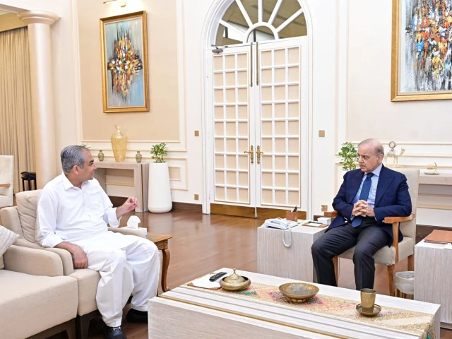 Interior Minister Moshin Naqvi meets Prime Minister Shehbaz Sharif. Photo:X