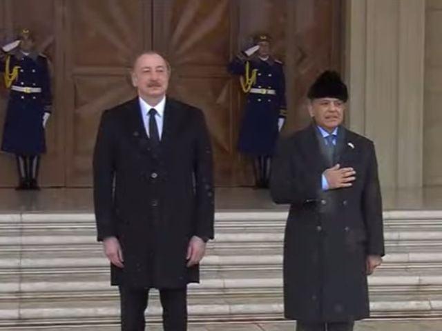 President Ilham Aliyev welcomed the Pakistani Prime Minister when he arrived at the Palais, where the national anthems of the two countries were played before the official reception of the Azerbaijani armed forces.