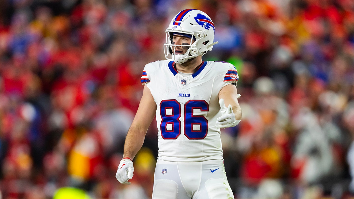 Buffalo Bills End Dalton Kincaid, # 86, against the Chiefs of Kansas City during the AFC championship match at the Geha Field at the Stadium Arrowhead in Kansas City, Missouri, January 26, 2025. (Images of Mark J. Rebilas-Imagn)