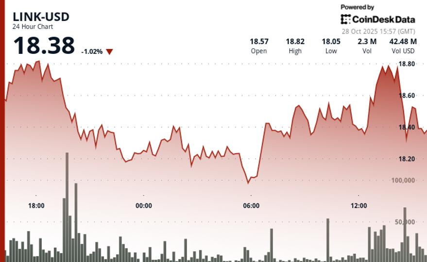 The native token of the Oracle Chainlink network fluctuated just above $18 during a volatile Tuesday session amid real-world adoption momentum.