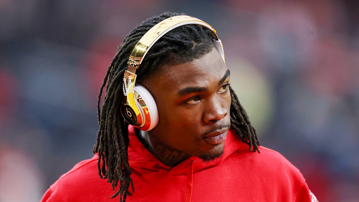 Kansas City Chiefs wide receiver Rashee Rice warms up before a game against the Cincinnati Bengals on September 15, 2024, in Kansas City, Missouri. (Reed Hoffmann/AP)