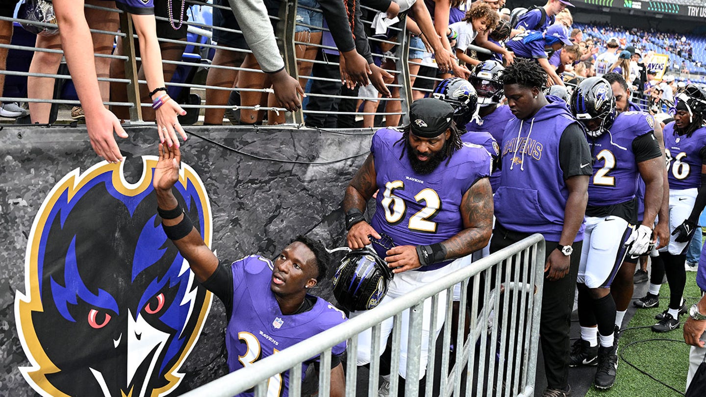 The Baltimore Ravens enter the locker room before the game against the Indianapolis Colts during the 2025 NFL preseason game at M&T Bank Stadium on August 7, 2025 in Baltimore, Maryland. (G Fiume/Getty Images)