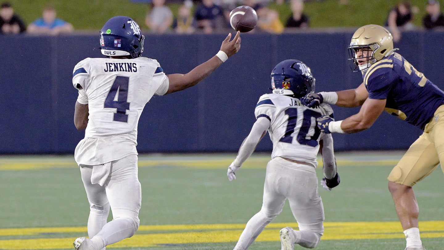 Rice Owls quarterback Chase Jenkins (4) passes during a game between the Rice Owls and the Naval Academy Midshipmen at Navy-Marine Corps Stadium in Annapolis, Maryland, September 27, 2025. (Mark Goldman/Icon Sportswire via Getty Images)