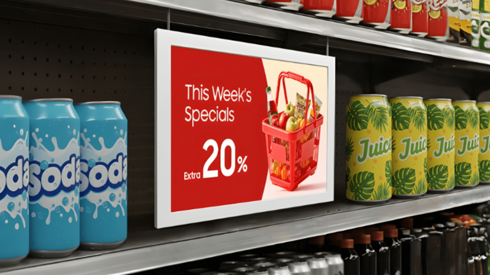 The company says the screen maintains a paper-like appearance, aiming to replicate the visual clarity of printed signage while transferring it to a digital format.