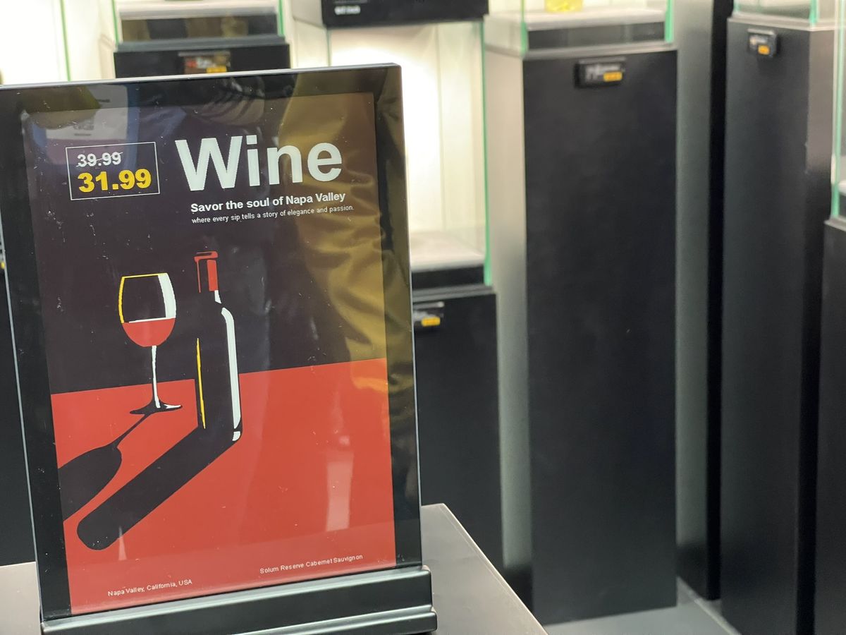 To illustrate this, Solum made fun of a wine store with bottles in glass boxes, with adjacent bar exhibitions reflecting the appearance of wine. He also showed a Spectra 6 e ink screen with an advertisement of wine that seemed identical to print.
