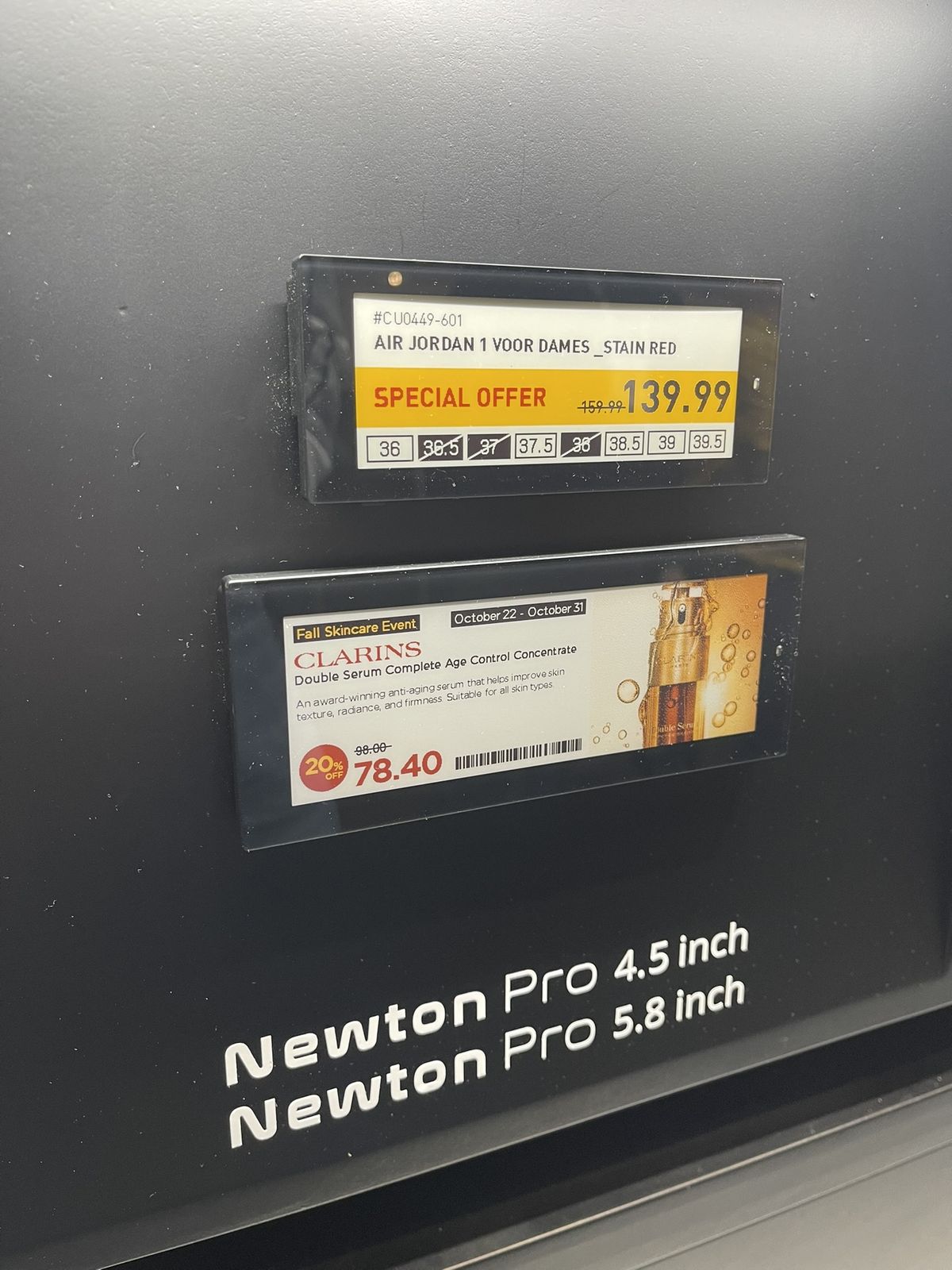Thanks to E-Ink, a store could update them at the same time, allowing brick and mortar stores to compete with the price with online retailers thanks to almost real dynamic price changes.