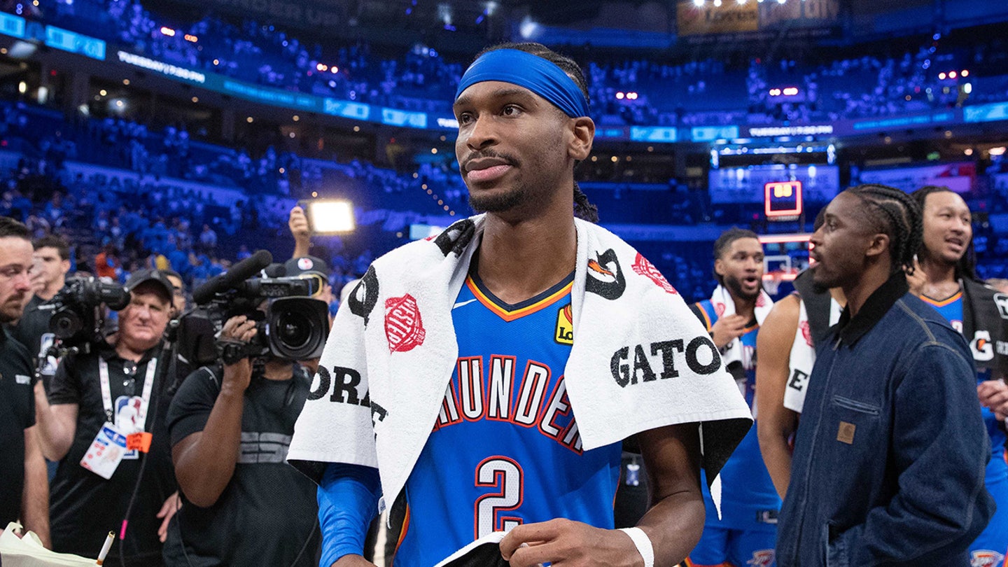 Oklahoma City Thunder guard Shai Gilgeous-Alexander (2) leaves the court after his team defeated the Denver Nuggets in game seven of the second round of the 2025 NBA Playoffs at Paycom Center. (Alonzo Adams/Imagn Images)