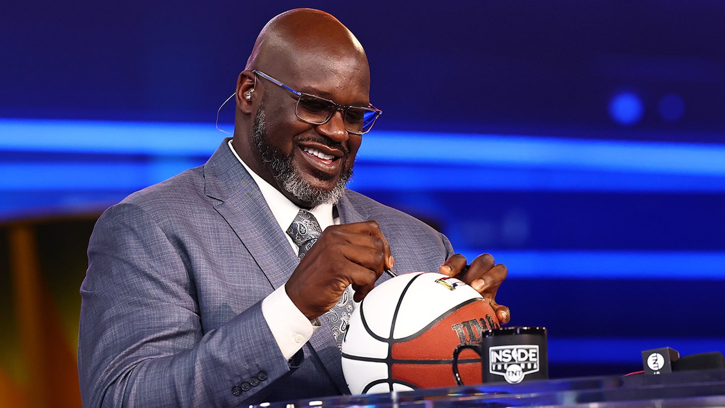 Shaquille O’Neal smiles before a match between the PĂ©licans de la Nouvelle-Orleans and the Los Angeles Lakers as part of the NBA 2023 season on December 7, 2023, at T-Mobile Arena in Las Vegas. (Mike Kirschbaum / NBAE via Getty Images)