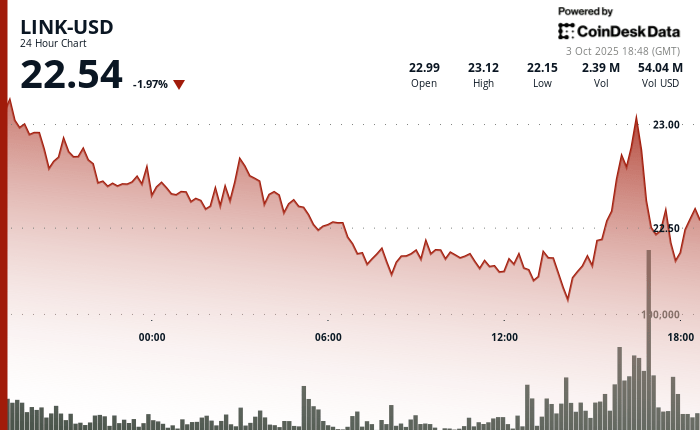 - Link changed his hands into a fork of $ 0.96 between $ 22.13 and $ 23.09, which represents a fluctuation of 4.27% during the 24 -hour period.
