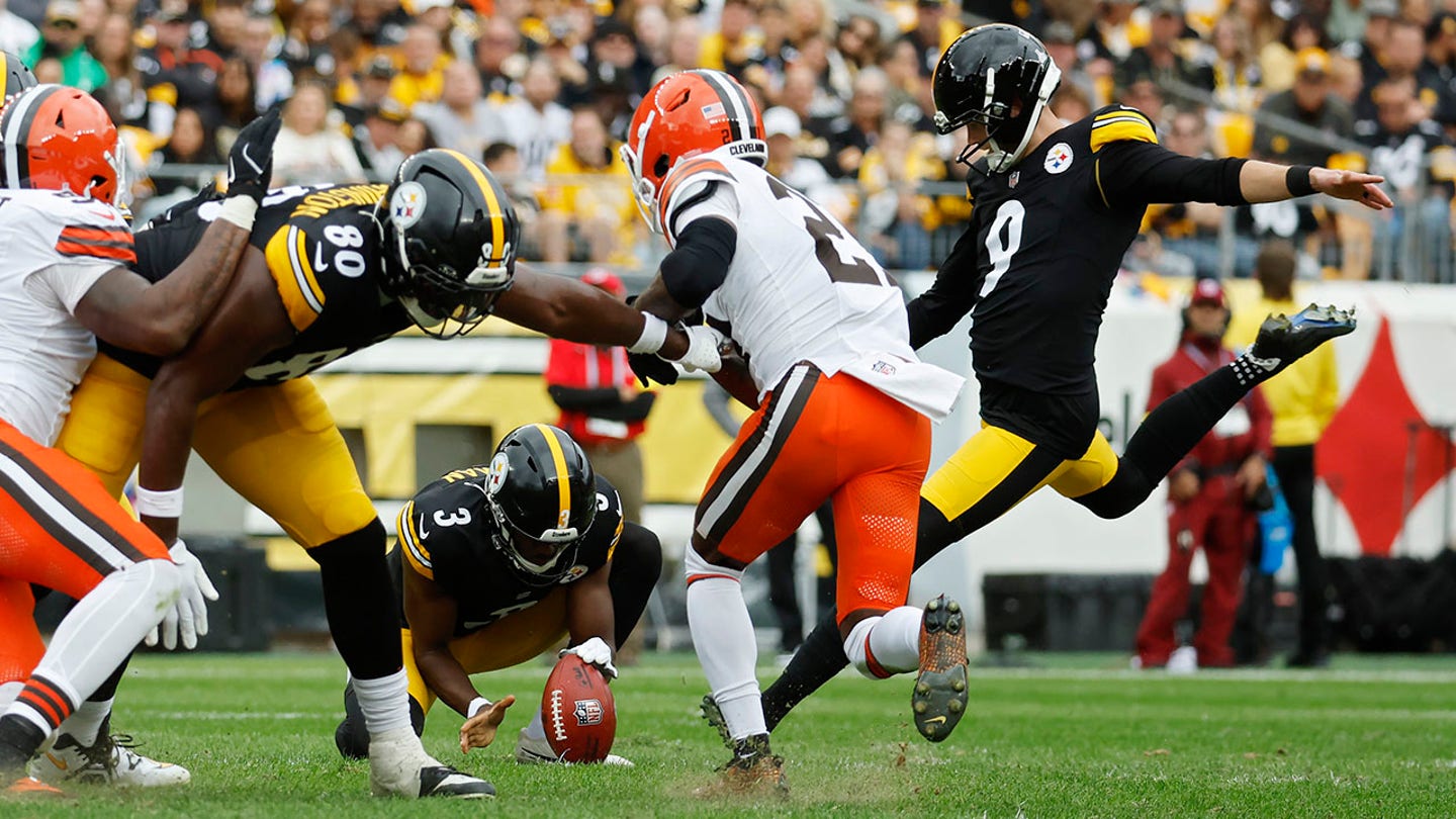 Chris Boswell of the Pittsburgh Steelers scores a field goal against the Cleveland Browns during the first quarter of the game at Acrisure Stadium on October 12, 2025, in Pittsburgh. (Justin K. Aller/Getty Images)