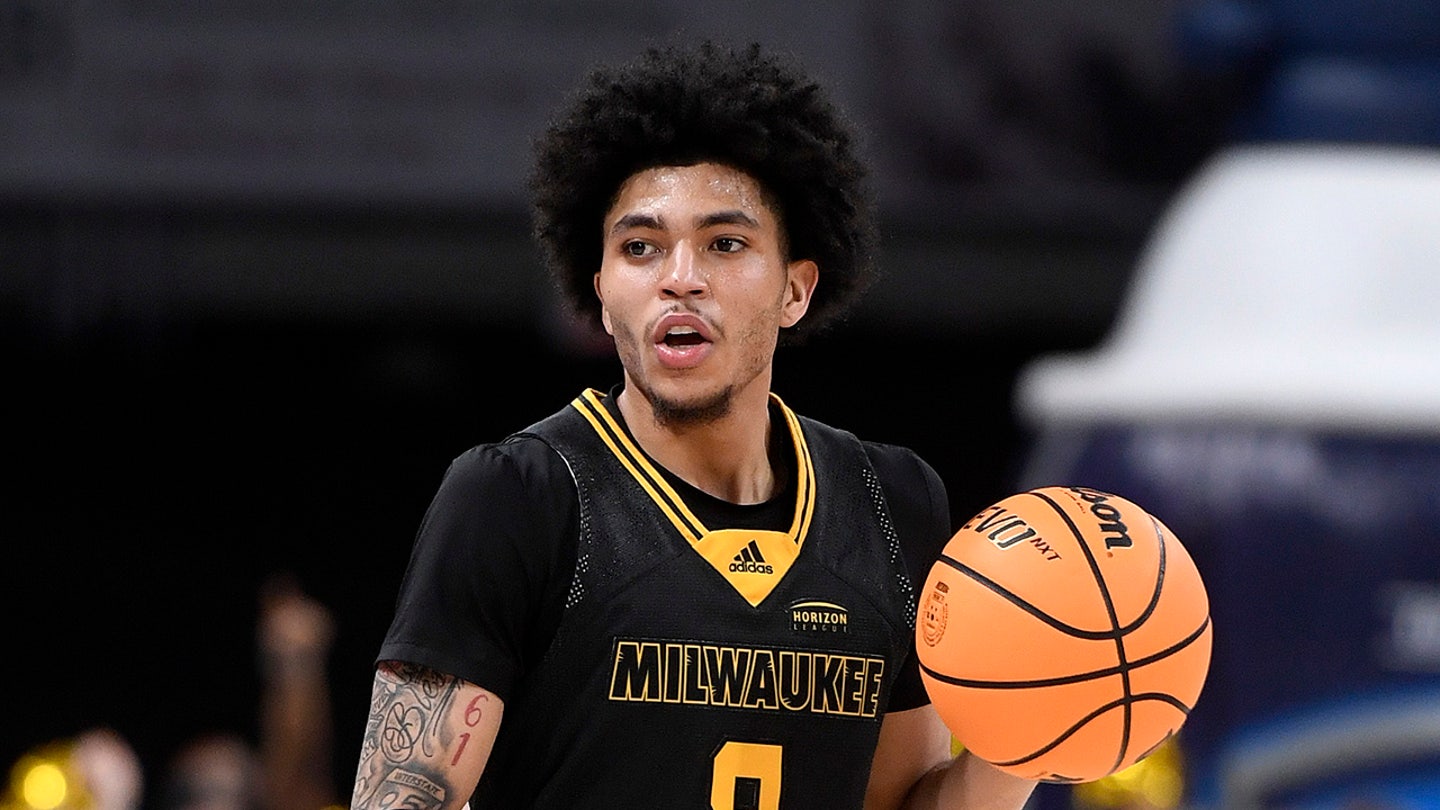 Milwaukee Panthers guard Erik Pratt (8), now playing for Stony Brook, dribbles during the Horizon League championship basketball game between the Oakland Golden Grizzlies and the Milwaukee Panthers at the Indiana Farmers Coliseum in Indianapolis, Indiana. Indianapolis, Indiana, March 12, 2024. (Michael Allio/Icon Sportswire via Getty Images)