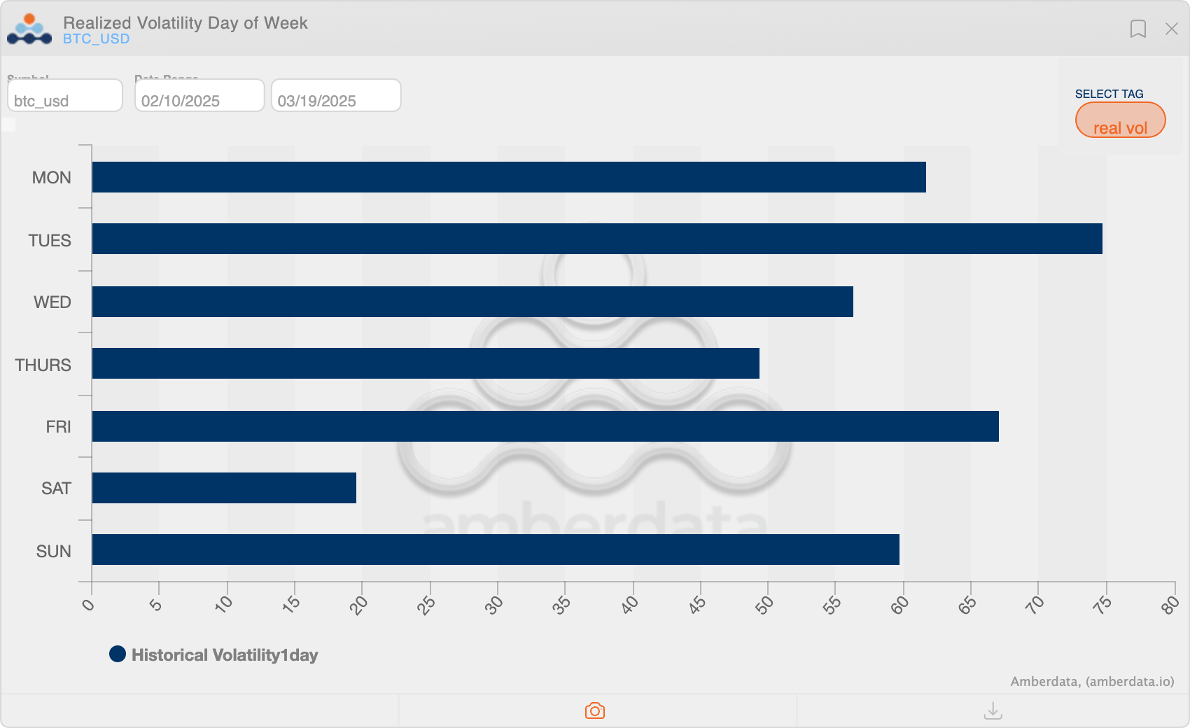 According to Amberdata, Tuesdays were the most volatile day of the week so far in 2025, especially during the last month, where volatility carried out has an average of 82.
