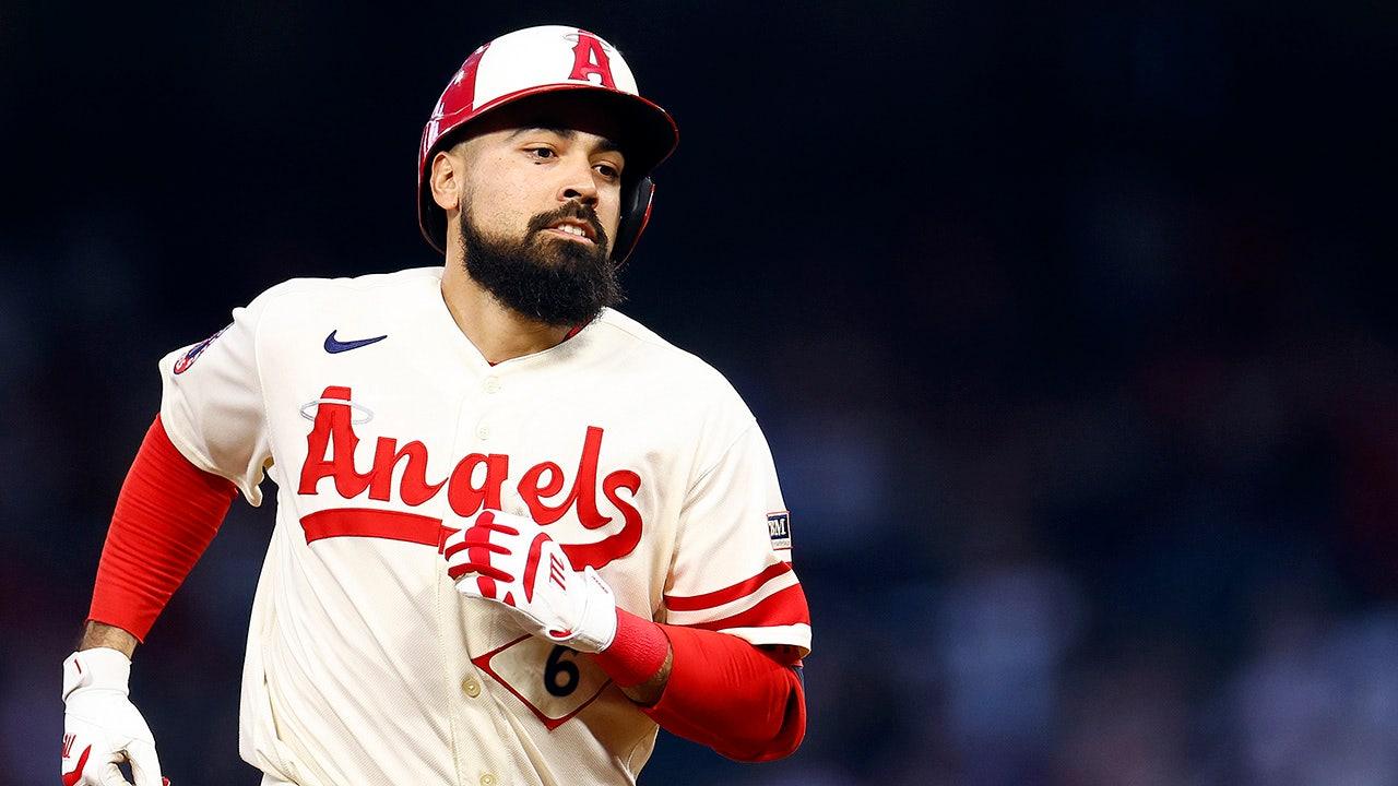 Los Angeles Angels’s third basic player Anthony Reston, runs on the field before a match against Oakland Athletics at the Ringcentral Coliseum in Oakland, California, on May 15, 2022. (Robert Edwards / USA TODAY SPORTS)