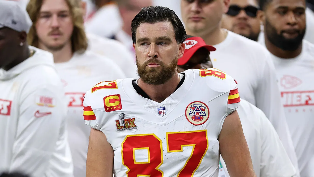 Kansas City Chiefs Tight End Travis Kelce during the Super Bowl Lix against the Philadelphia Eagles at Caesars Superdome. (Images Bill Streicher-Imagn)