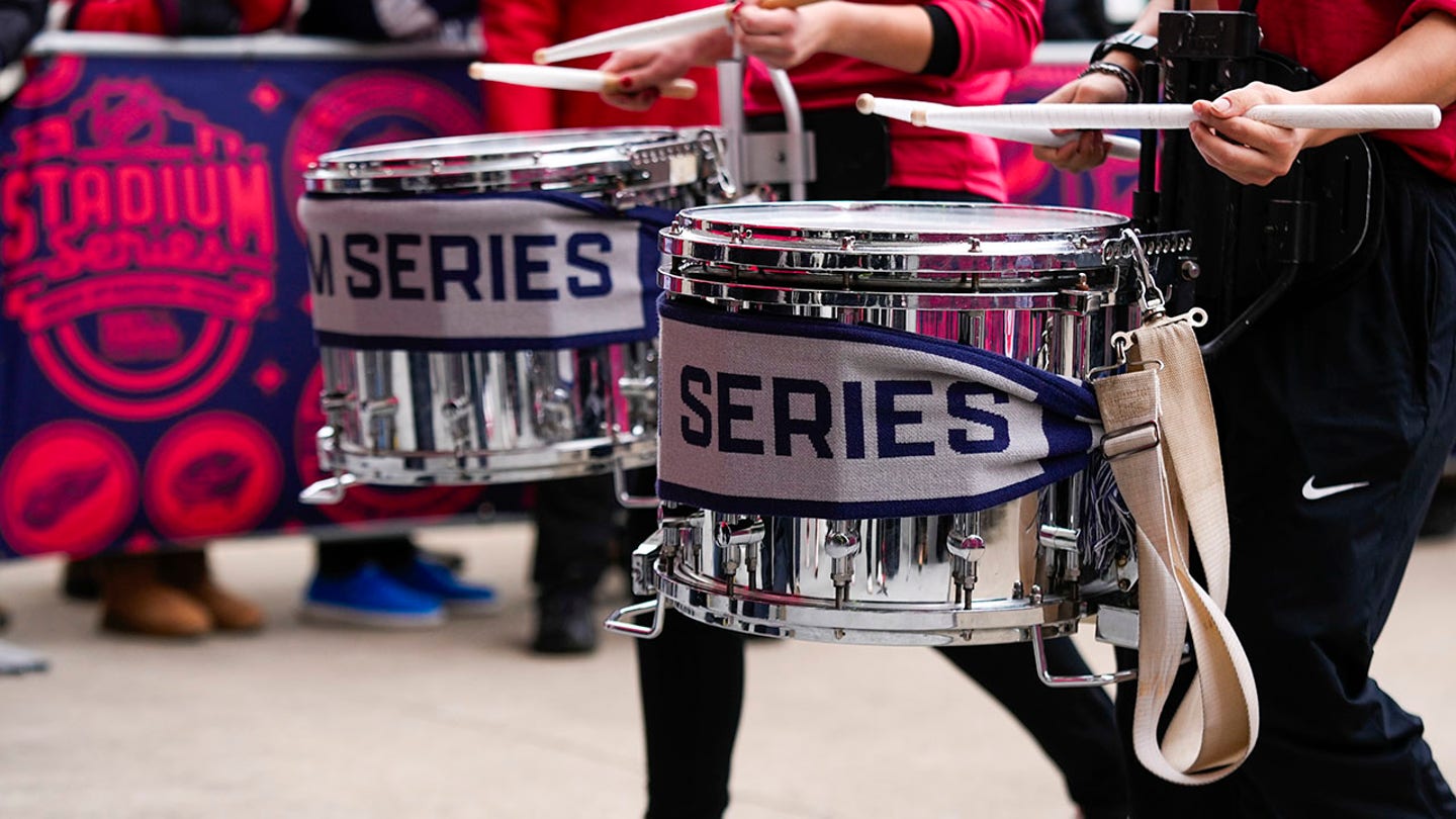 The Ohio State fanfare occurs in front of the Ohio Stadium before a match of the NHL Stadium series between the Columbus Blue Jackets and the Detroit Red Wings at the Ohio Stadium in Columbus, Ohio, on March 1, 2025. (Samantha Madar / USA Today Network via Imagn Images)
