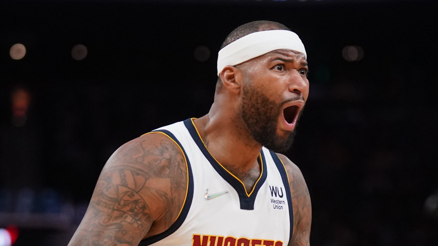 Denver Nuggets Center DeMarcus Cousins during the second half against the Los Angeles Lakers in Ball Arena in Denver, Colorado, April 10, 2022. (Ron Chenoy / USA TODAY SPORTS)