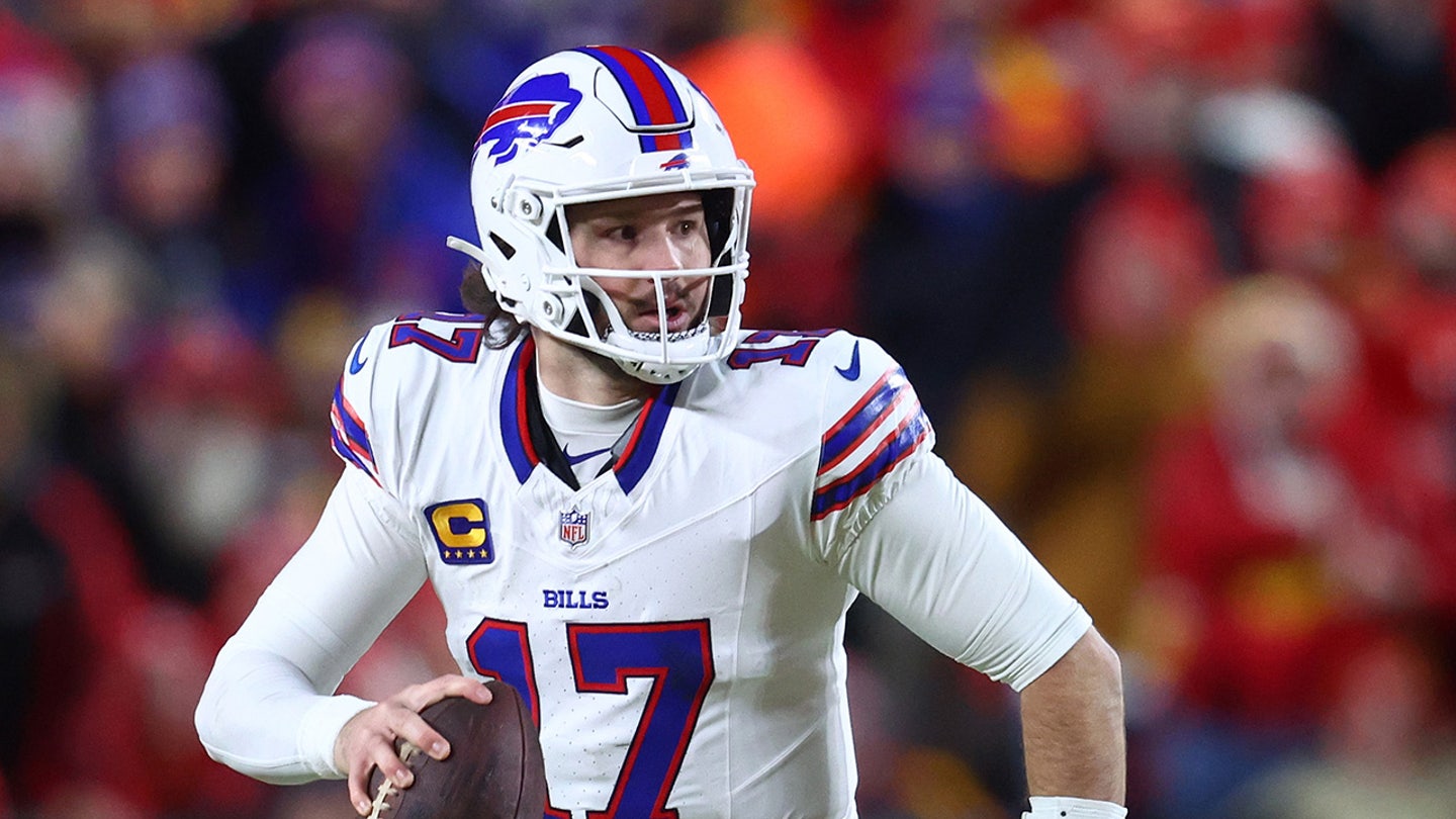 Buffalo Bills, Josh Allen’s quarterrier, dates back to the Kansas City chiefs during the first half of the AFC championship match at the Geha Field at the Stadium Arrowhead. (Mark J. Rebilas / Imagn Images)