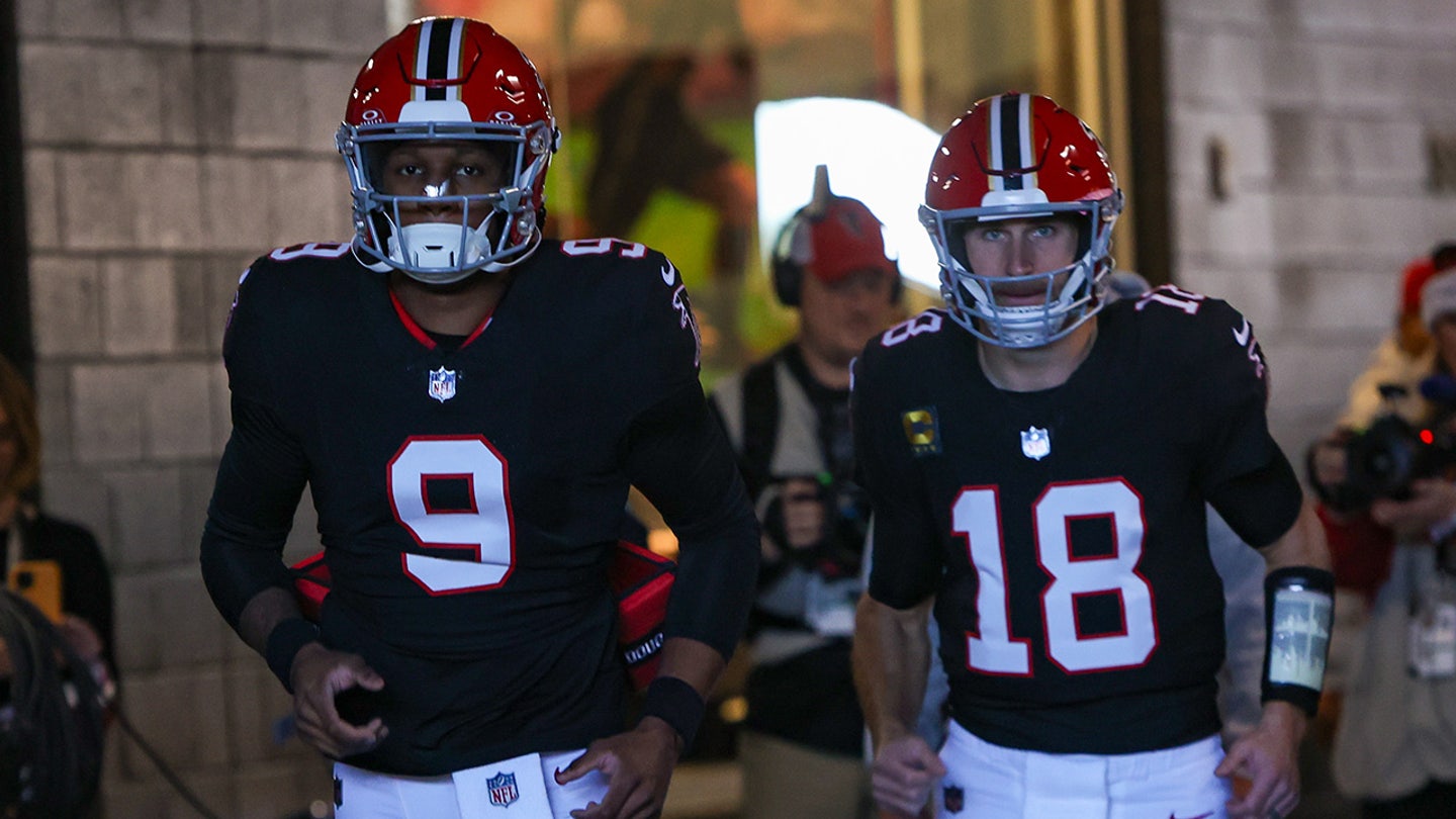 The quarter of the Falcons of Atlanta Michael Penix Jr. (9) and the quarter Kirk Cousins (18) before a match against the Giants of New York at Mercedes-Benz Stadium. (Brett Davis / Imagn images)