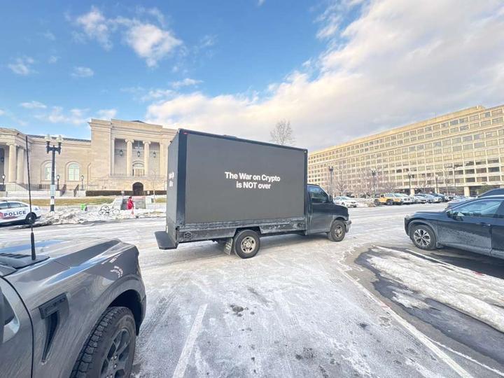 Konanykhin’s company further sought to educate the SEC with a campaign involving trucks driving around downtown Washington and past the agency, decorated with pointed messages including the sentiment: “The war on crypto is NOT over.”
