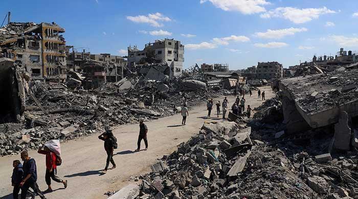 Palestinians walk past the rubble of destroyed buildings, amid a ceasefire between Israel and Hamas, in Gaza City, October 14, 2025. — Reuters