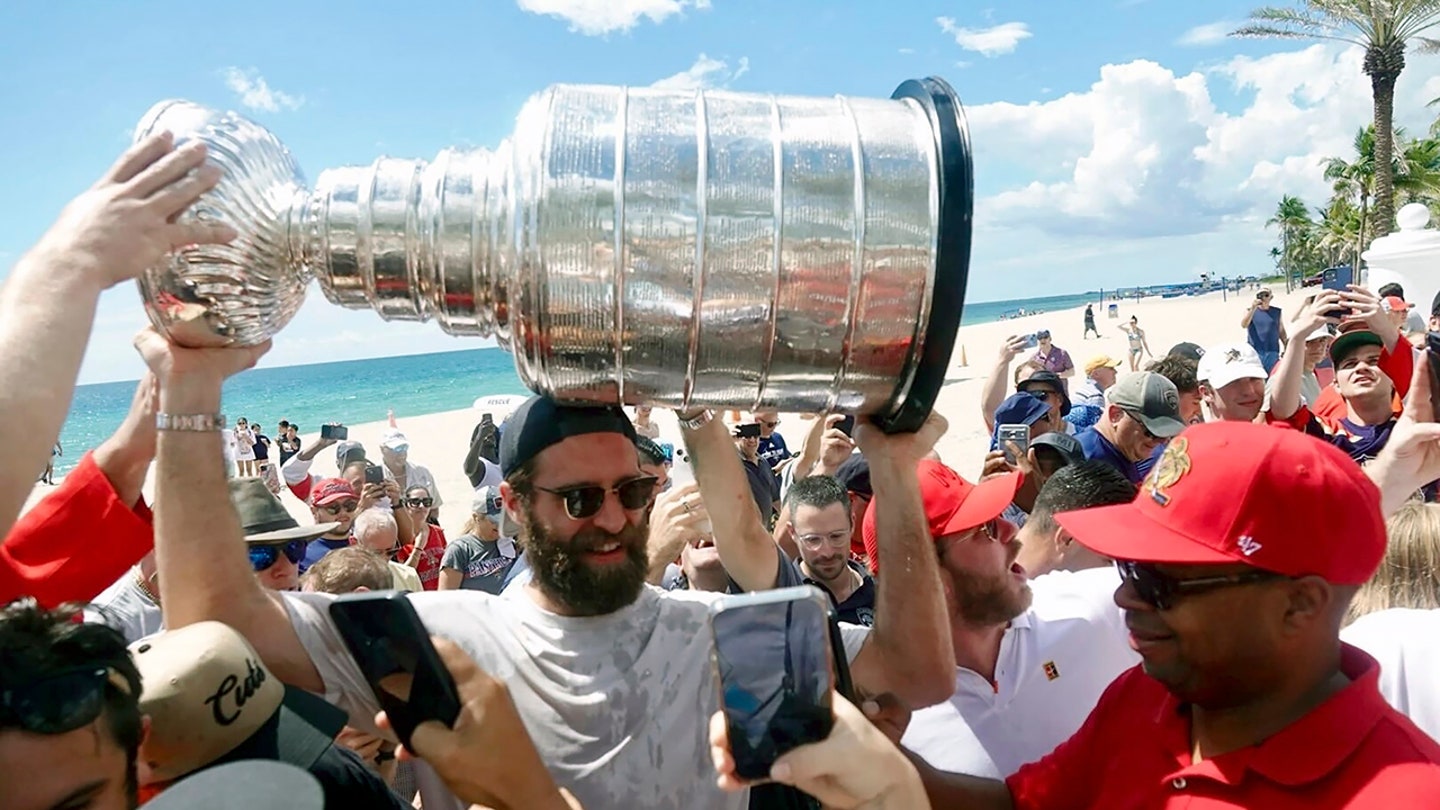 Several replicas signed Stanley Cups were among the other items that would have been sold. (Joe Cavaretta / South Florida Sun-Sentinel via AP)
