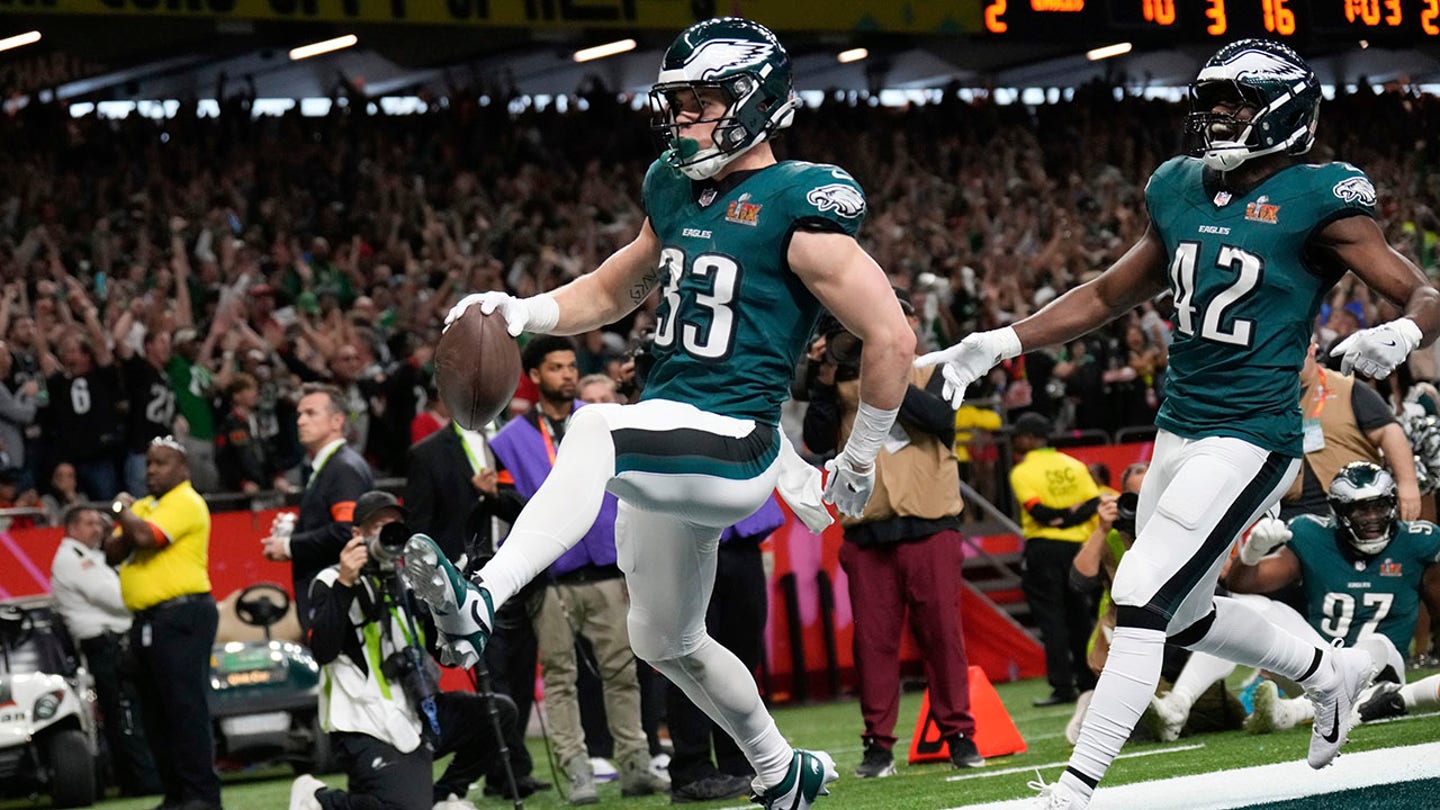 The defensive back of the Eagles of Philadelphia, Cooper Dejean, # 33, marks a hit after intercepted a pass during the first half of the Super Bowl Lix against the Chiefs of Kansas City on Sunday, February 9, 2025 in New Orleans. (AP photo / George Walker IV)