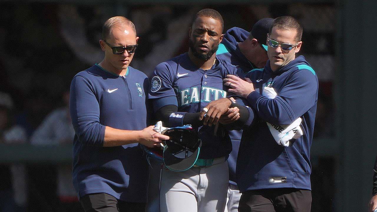 Seattle Marine Right Field Player, Victor Robles, was injured during the game against the Giants of San Francisco during the ninth round. (Neville E. Guard / Imagn Images)