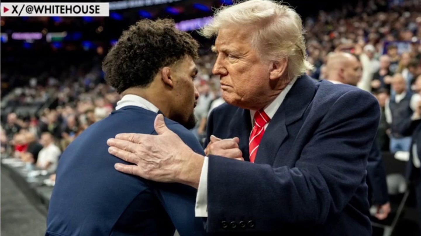 Carter Starocci, on the left, and President Donald Trump. (X / @ Whitehouse / Fox & Friends Screengrab)