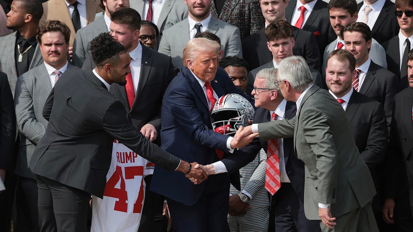 Trump then praised the work of the quarter-Arrière Will Howard, his offensive line, the Quinshon Judkins and Treveyon Henderson runners, the Emeka Egbuka and Jeremiah Smith receptors, and more throughout his speech. He made sure to shake the hand of everyone along the way as he explained his achievements.