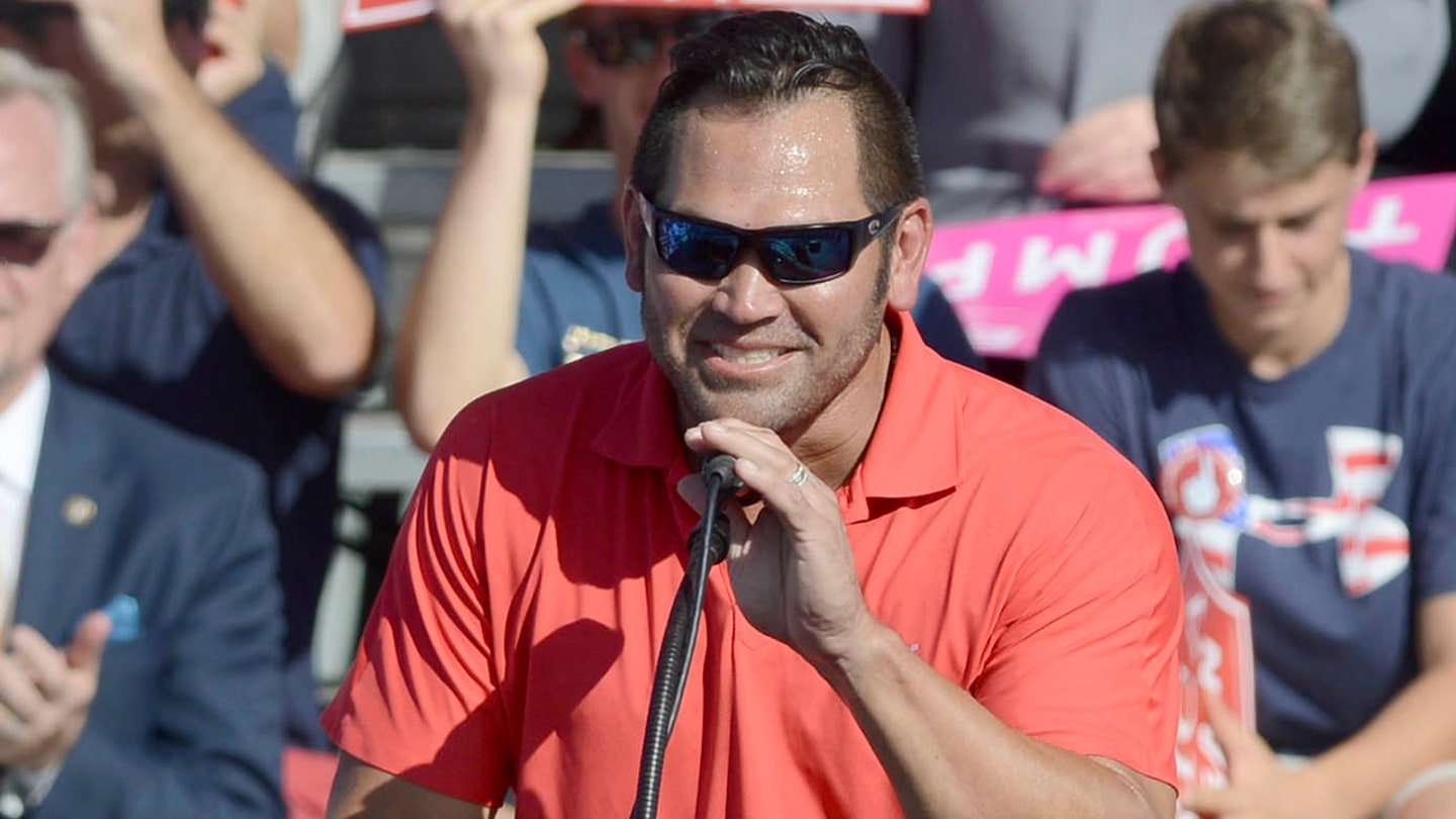 Baseball player Johnny Damon addressed the crowd before the Republican presidential candidate Donald Trump speaks during his campaign rally at the Central Florida Fairgroups in Orlando, Florida, November 2, 2016. (Craig Bailey / Florida Today via USA Today Network)