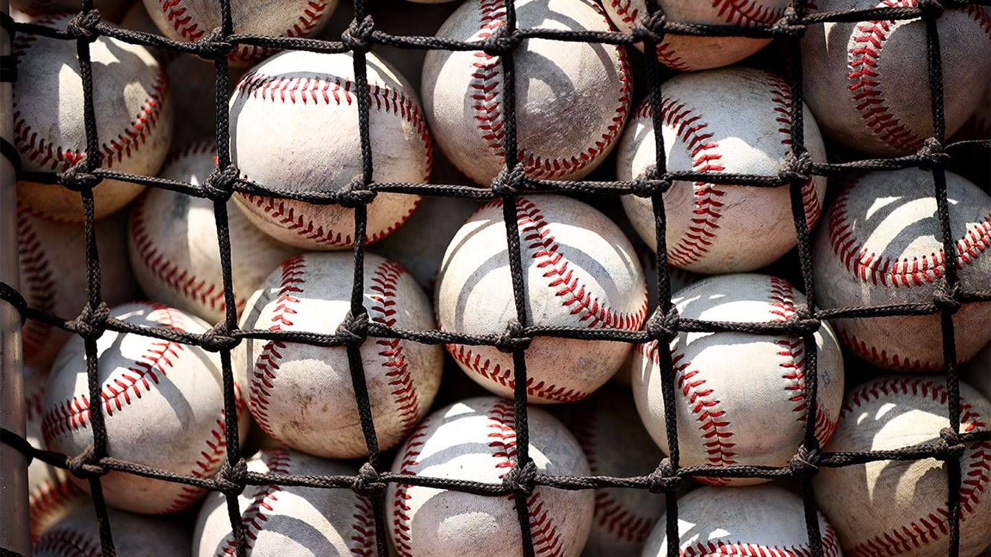 A gathering of baseball balls before stick training. (Photos Jamie Schwaberow / NCAA via Getty Images)