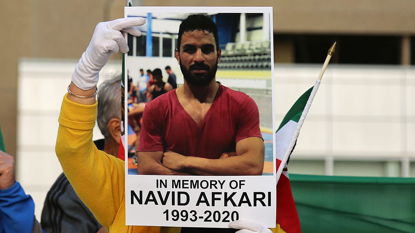 Iranians in Canada demonstrate at Mel Lastman Square against the Iranian regime’s execution of wrestler Navid Afkari, in Toronto, Ontario, September 15, 2020. The death sentence caused an international outcry, but the regime persisted. (Photo by Sayed Najafizada/NurPhoto via Getty Images)