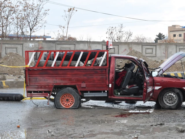 A damaged vehicle is pictured near an explosion site after an attack by Baloch insurgents in Quetta, Balochistan province, on Saturday. PHOTO: AFP