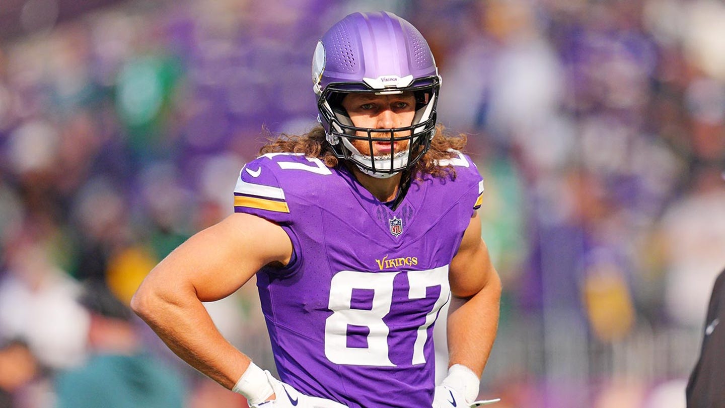 Minnesota Vikings tight end TJ Hockenson (87) warms up before the game against the Philadelphia Eagles at US Bank Stadium on October 19, 2025. (Brad Rempel/Imagn Images)